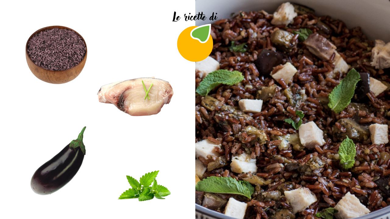 Questo riso, dal colore nero naturale e dal sapore dolce, si sposa benissimo con condimenti a base di pesce… in questo caso, proponiamo il pescespada!